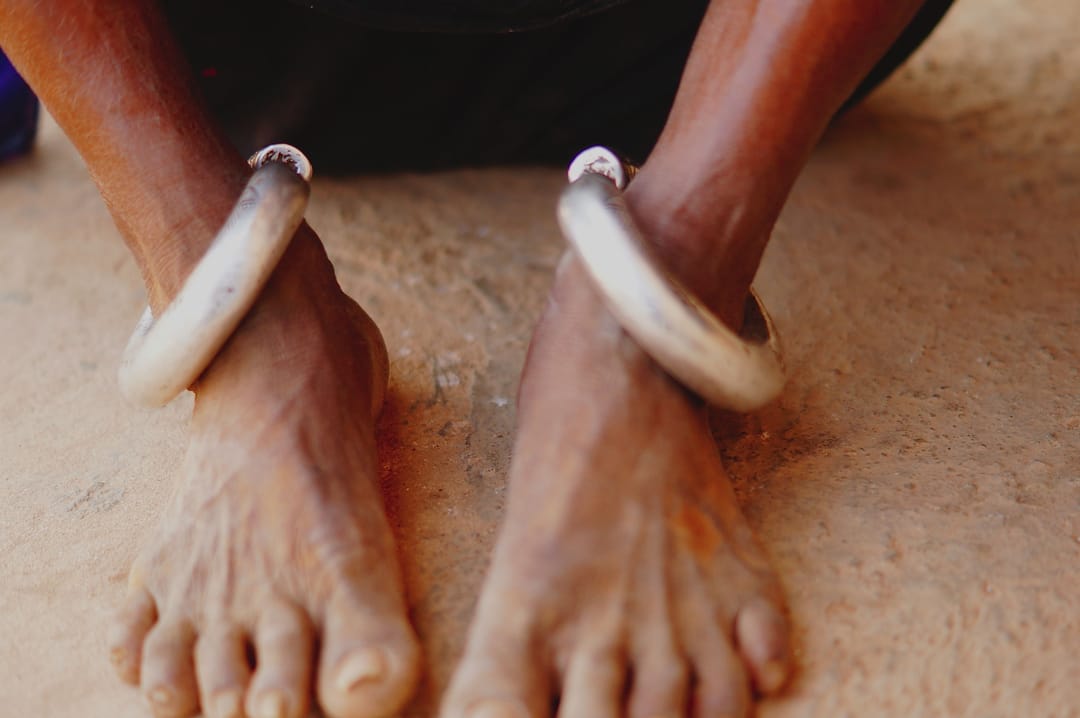 Meet Moongiben from Jujharpur village in the Junagadh District of Gujarat. She is wearing an ankle ornament called “Kadla” that weighs a half kg. The Kadla is traditionally worn by the Koli community of Gujarat. Made of silver, the weight of this ornament can range from half a kg to one kg each.